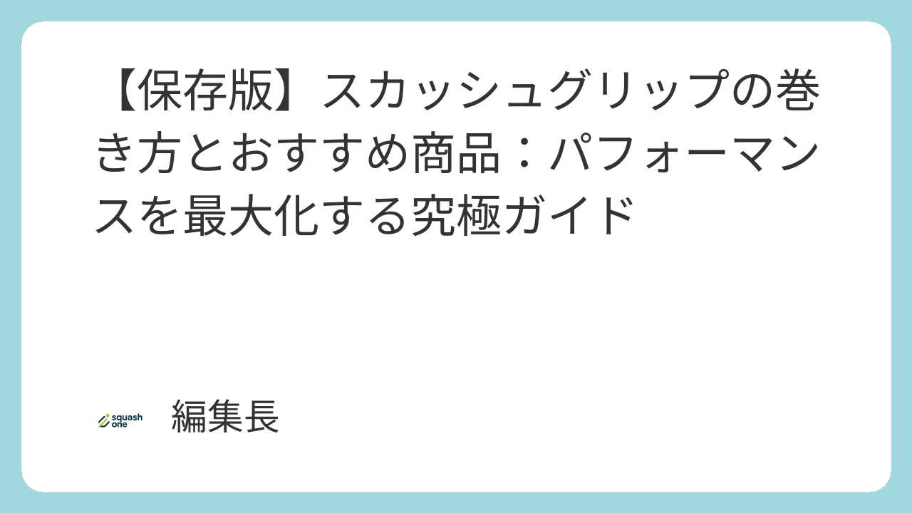 本記事は、スカッシュグリップに関する「選び方の科学」、「巻き方のマスタリー」、そして「最強製品の推奨」の3つの柱を提供し、読者の皆様が自身のパフォーマンスを最大化するための究極のガイドとなることを目指します。